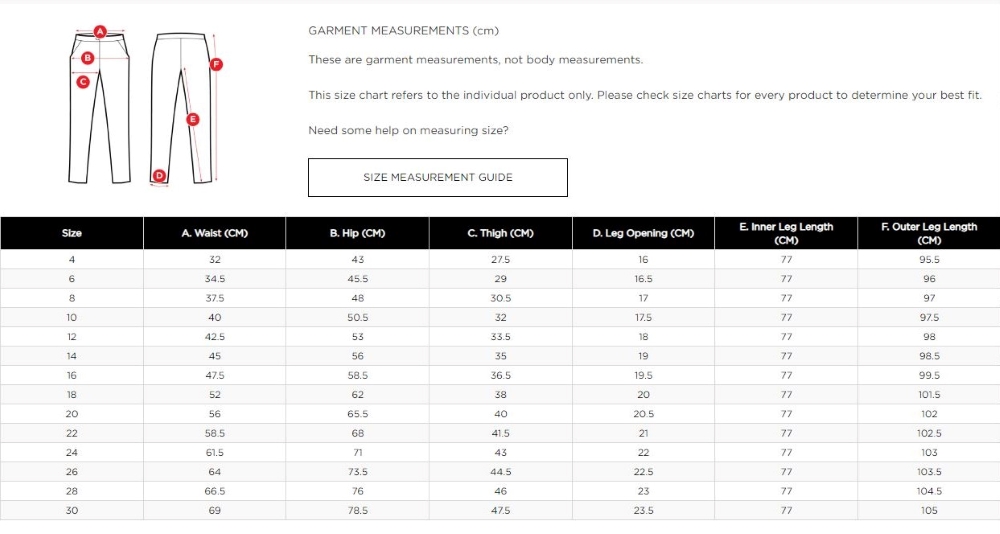 | HALF Waist (cm) | 32 | 34.5 | 37.5 | 40 | 42.5 | 45 | 47.5 | 52 | 56 | 58.5 | 61.5 |